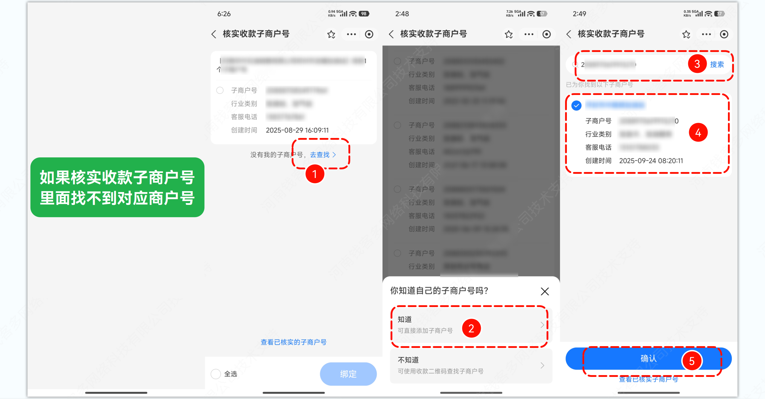 核实收款子商户号找不到对应商户号,手动搜索添加