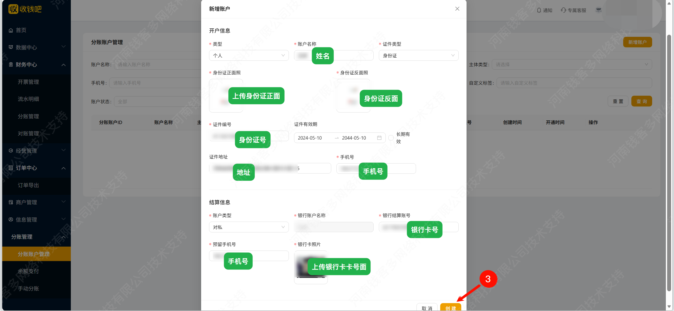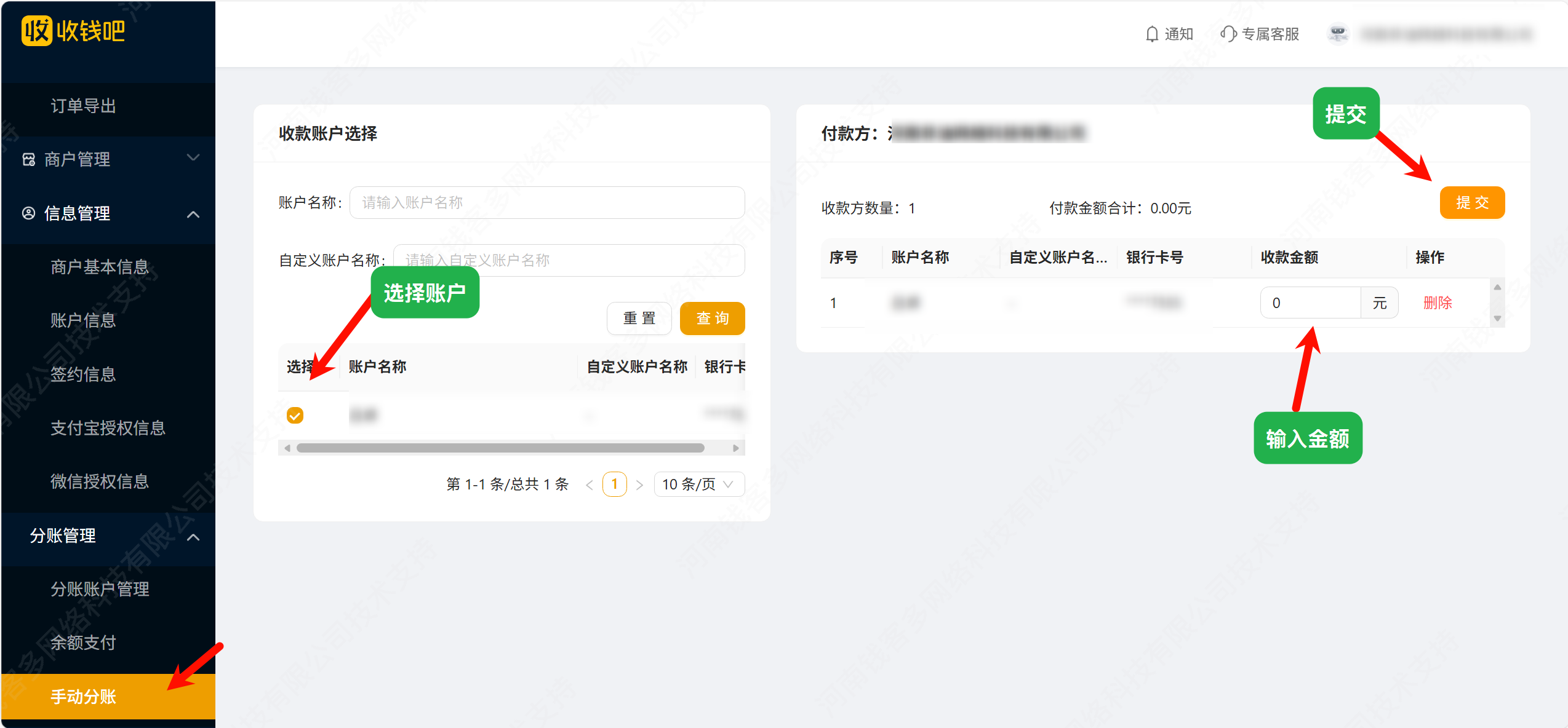 中投科信收钱吧分账账户申请、签约、转账步骤