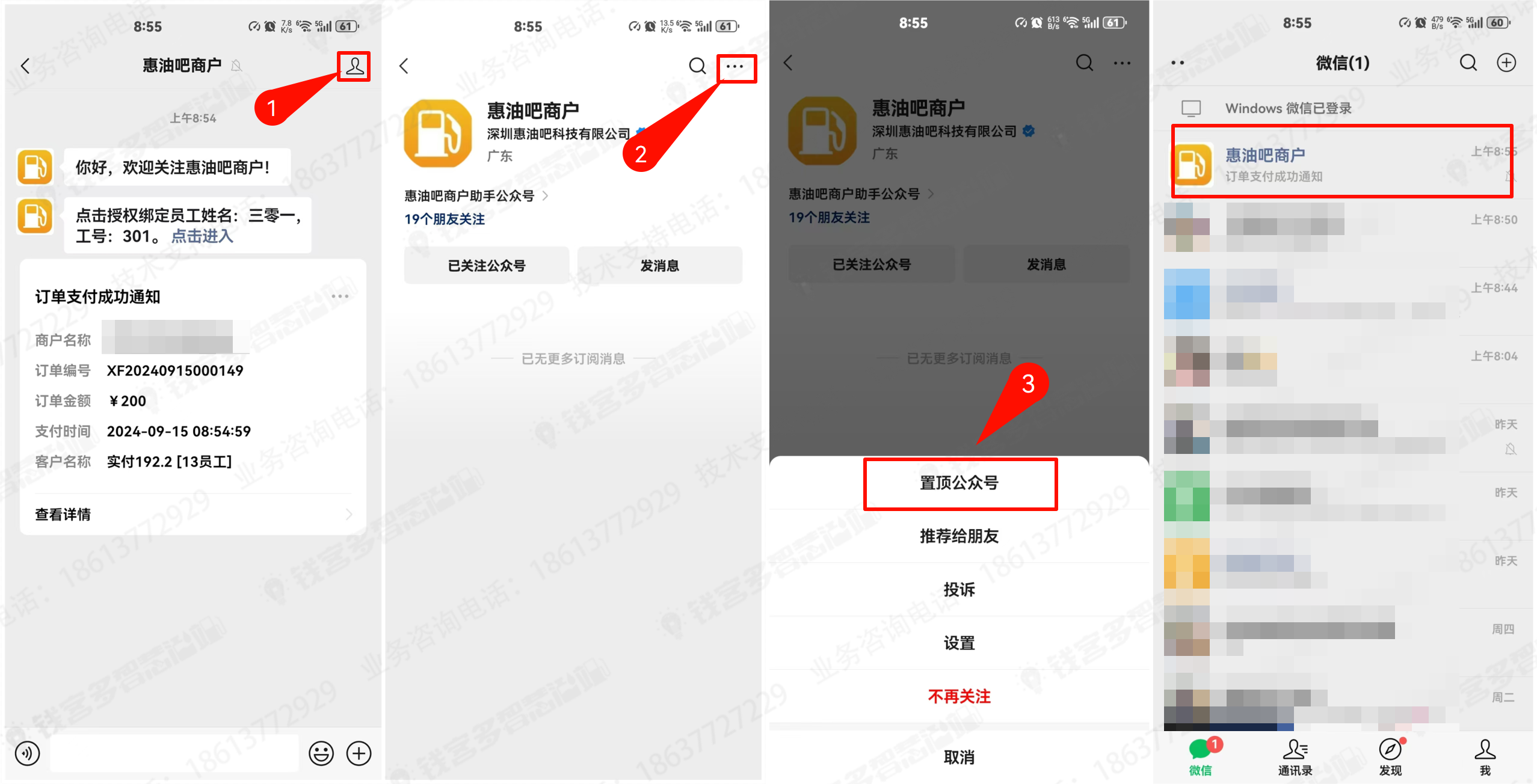 由于微信升级,服务号都被折叠,商户收款通知公众号可置顶公众号,即可在微信主页查看通知公众号,更方便查看收款通知