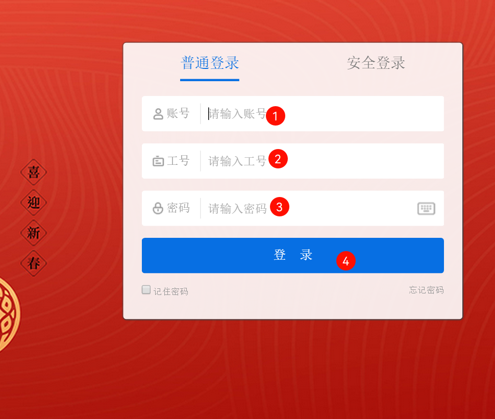 输入账号、工号、密码登录系统