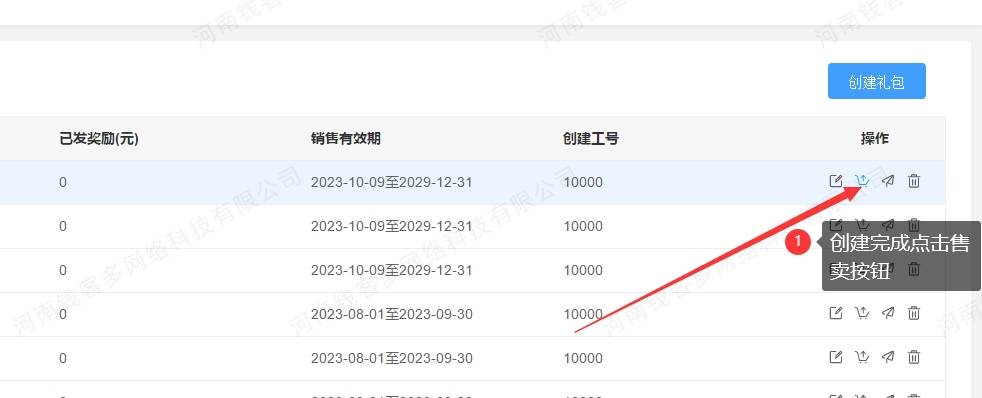 3、礼包列表支持搜索、编辑、删除,推广和销售。