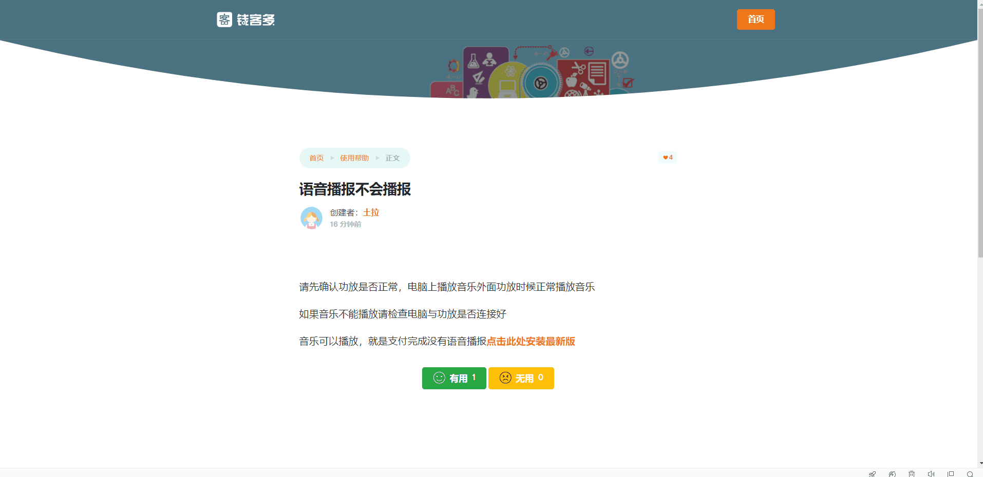 音乐可以播放,就是支付完成没有语音播报请按以下步骤安装下最新版