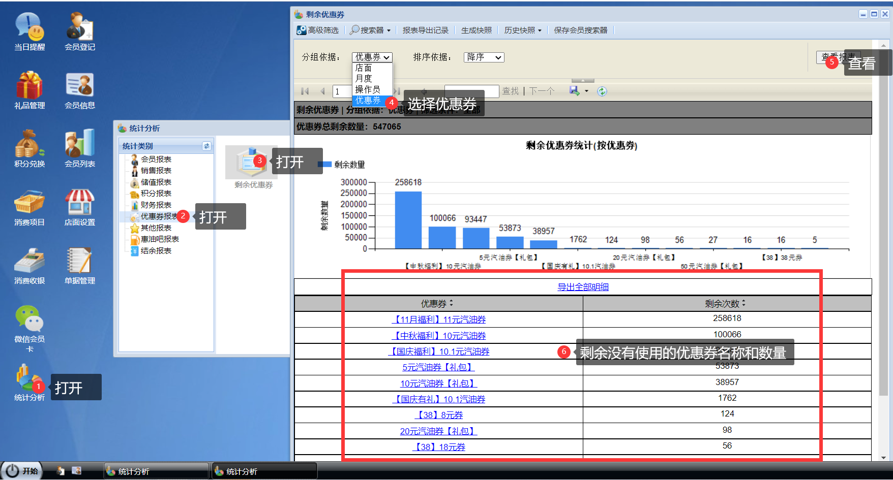 统计分析-优惠券报表-剩余优惠券