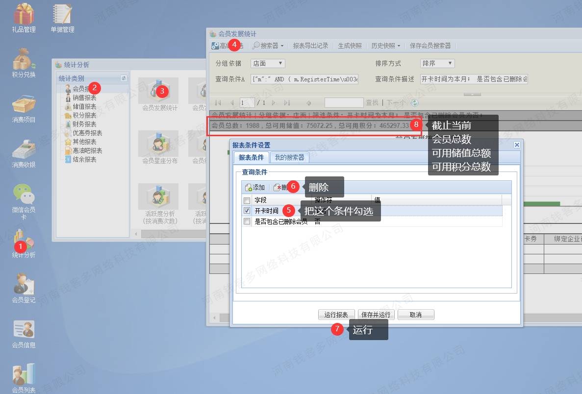 统计分析-会员报表-会员发展统计 查询会员储值积分总数