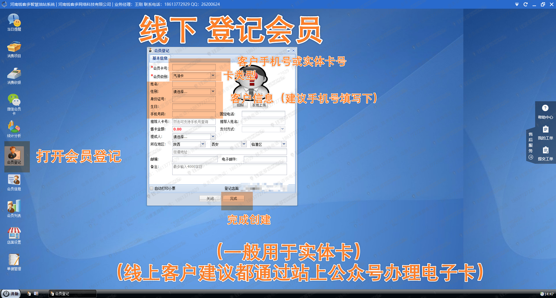 开始》程序》会员管理》会员登记,也可以把会员登记功能放在桌面快捷图标。