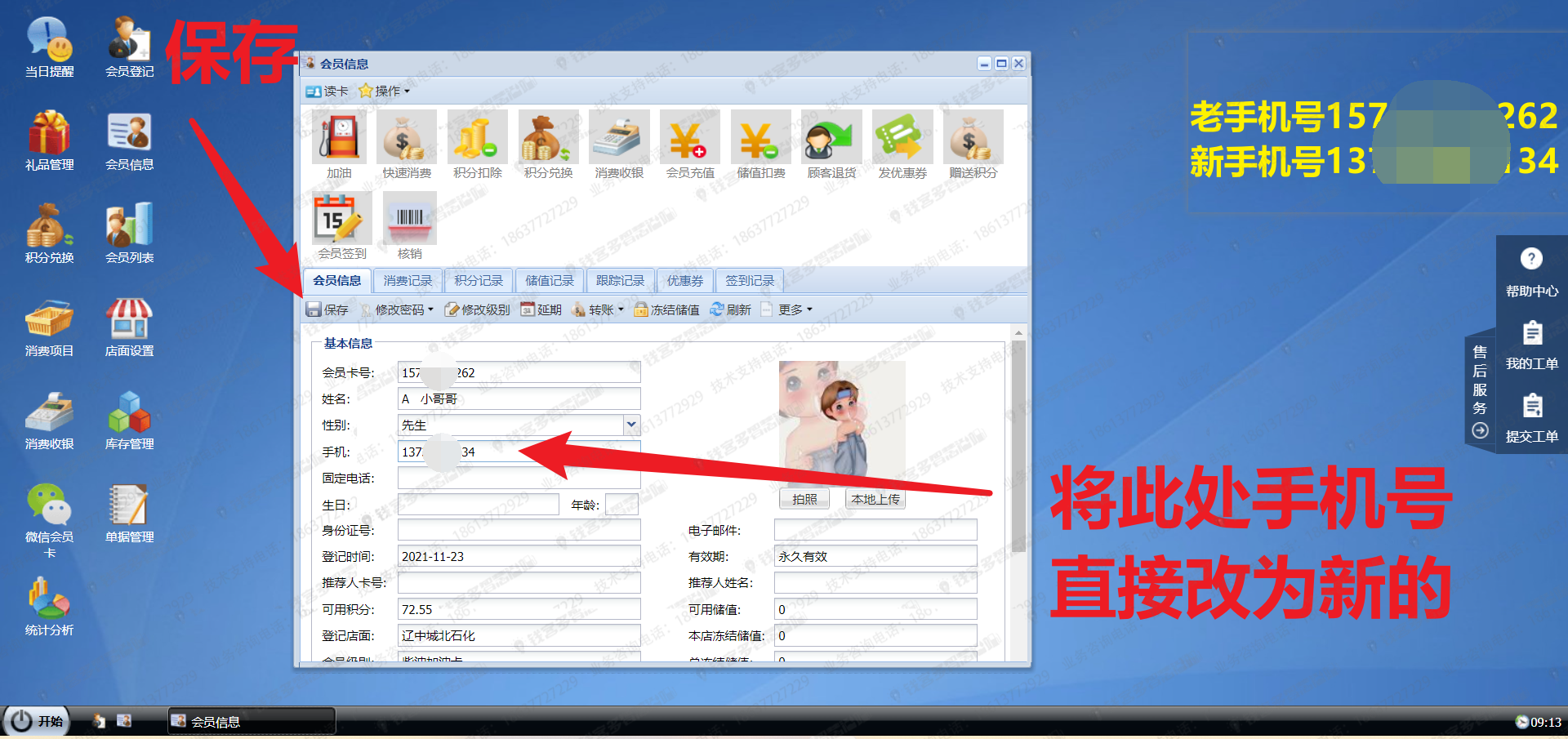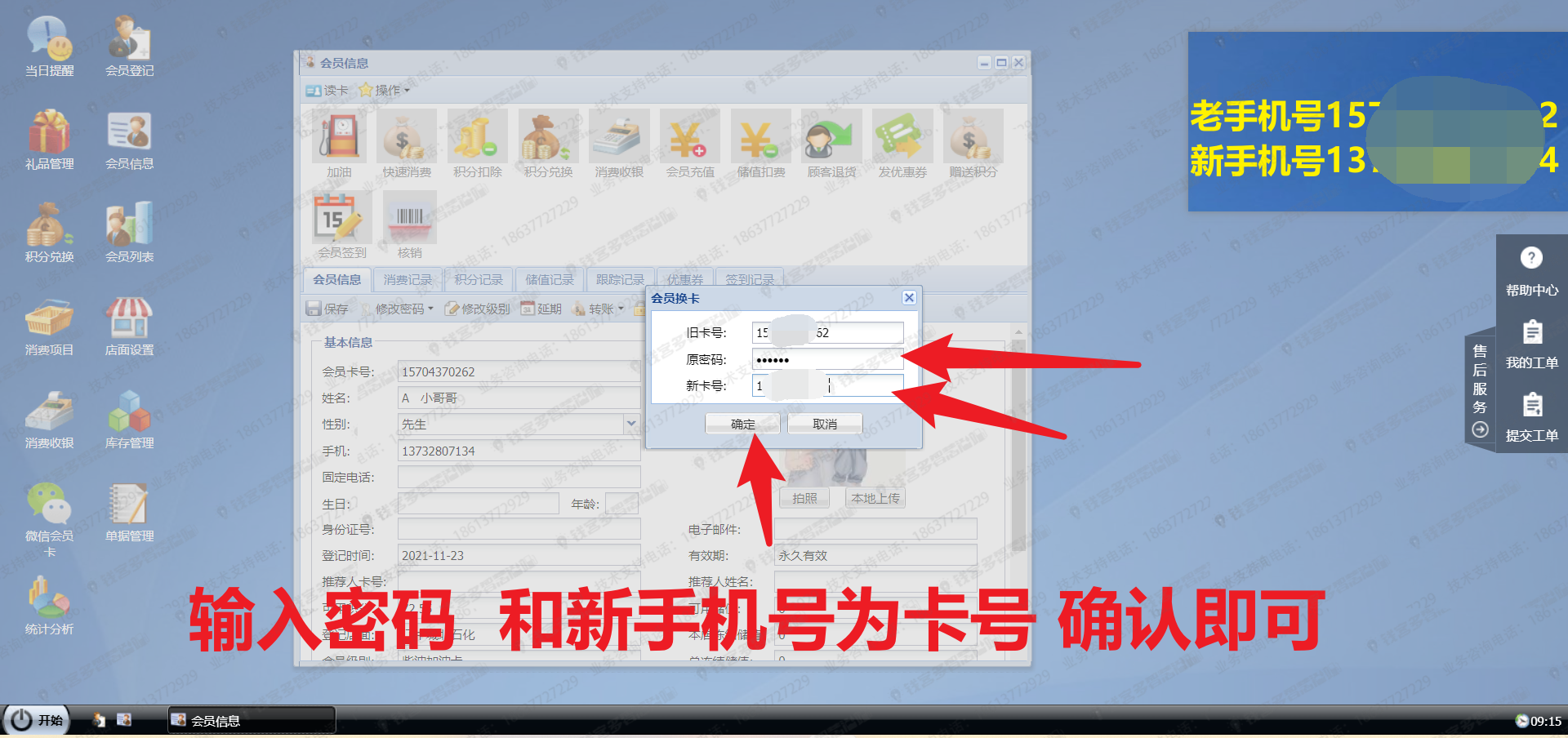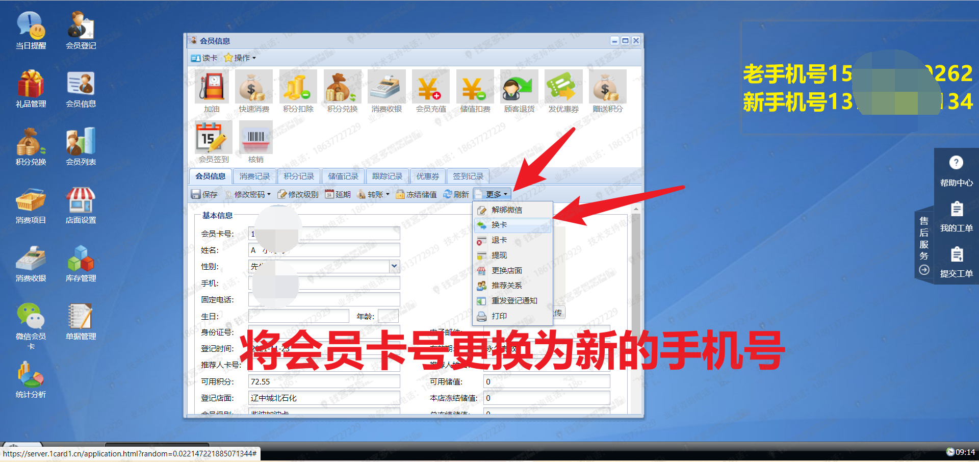 会员信息-更换、修改手机号和卡号