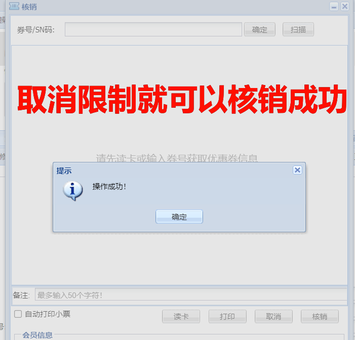 如何强制核销优惠券? 核销优惠券提示限制消费项目